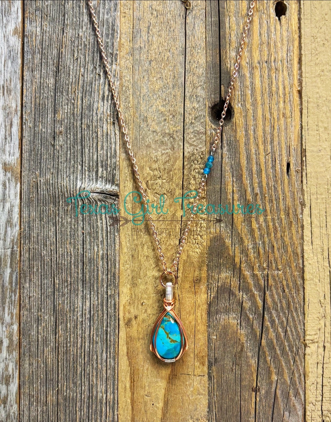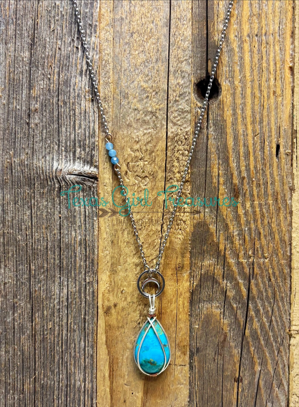 Turquoise from different regions. 18” chain with a 2”-3” extender on the back. Accent beads on chain.
